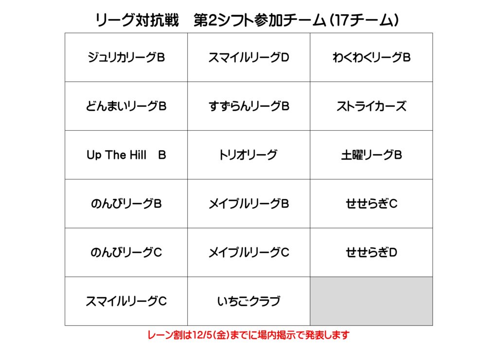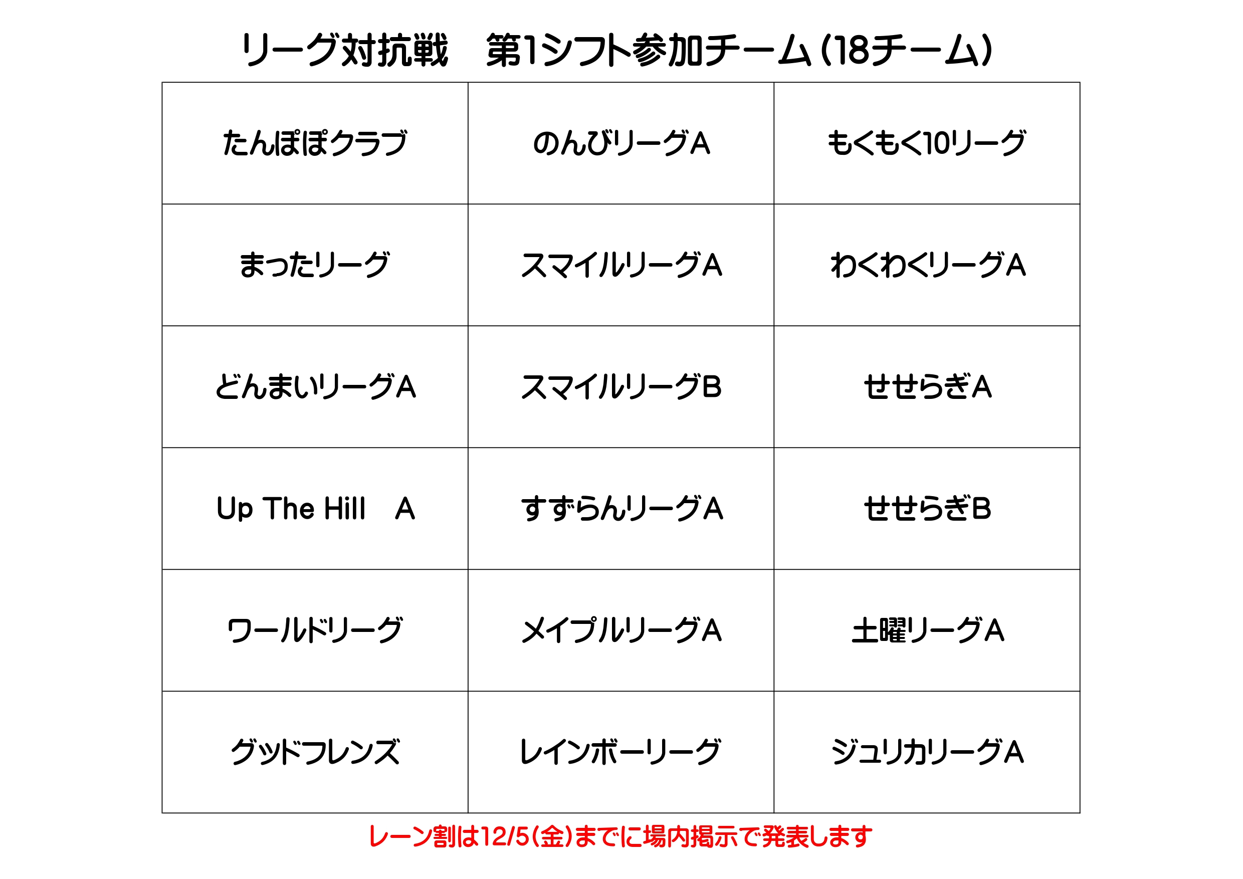 お知らせ2025-12-01第32回リーグ対抗戦(12/14) シフト発表
