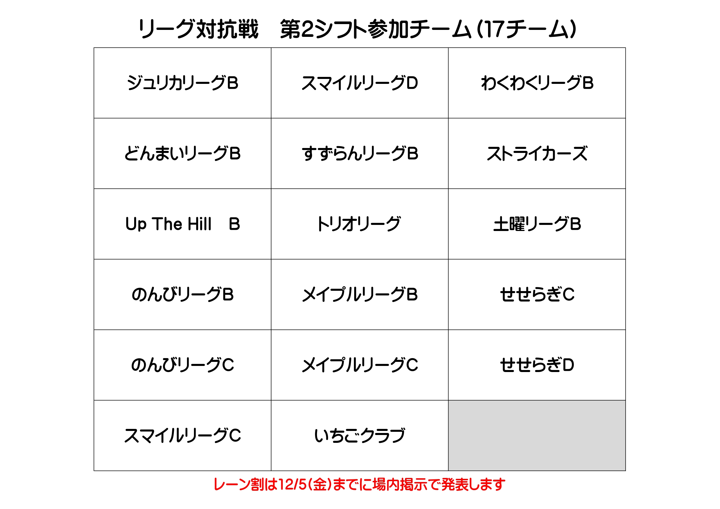 メンバー変更等は12/5(金)までとなります。レーン割振りは場内ホワイトボードにて追ってご案内いたします。