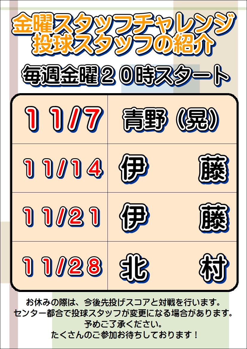 イベント2025-10-3011月 金曜スタッフチャレンジの案内