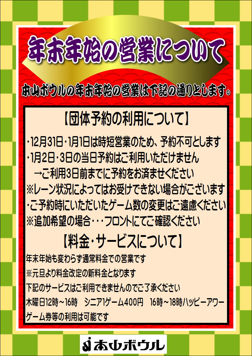 お知らせ2025-12-012025-2026年 年末年始営業のご案内