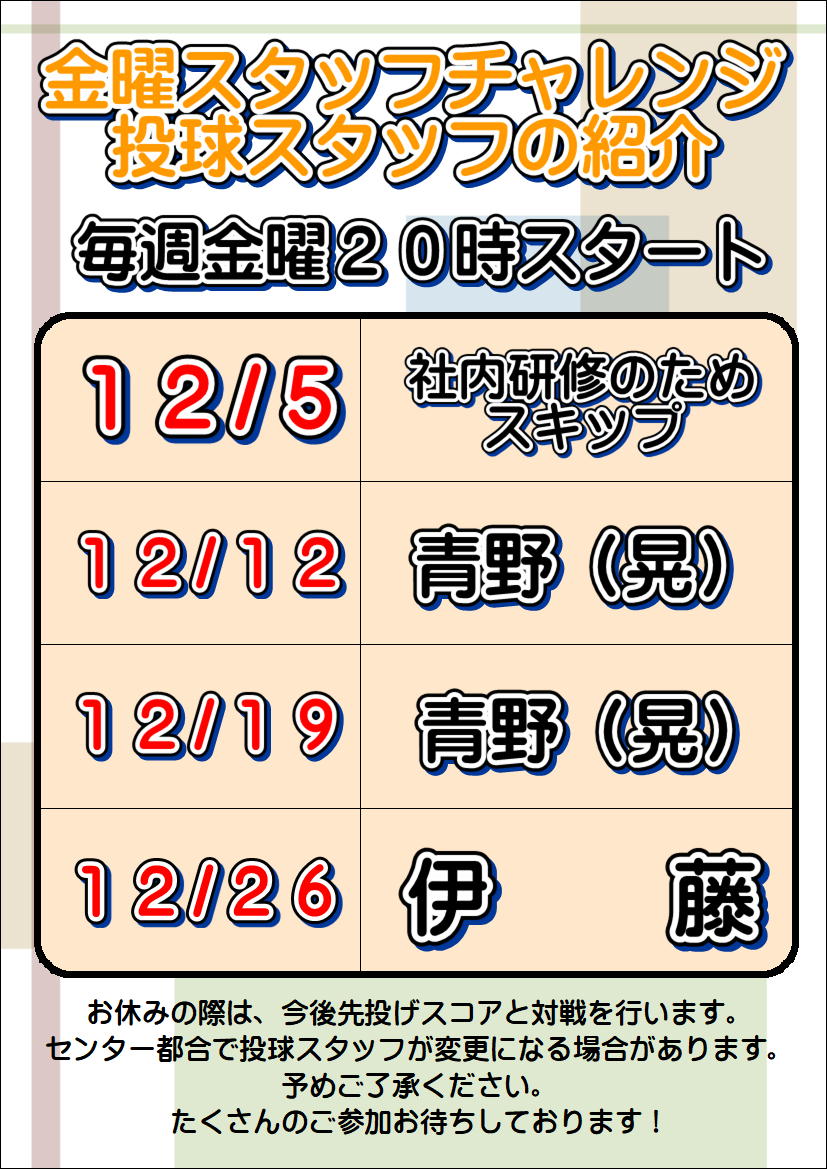 イベント2025-11-2812月 金曜スタッフチャレンジの案内