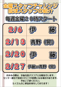 2月 金曜スタッフチャレンジの案内New!!